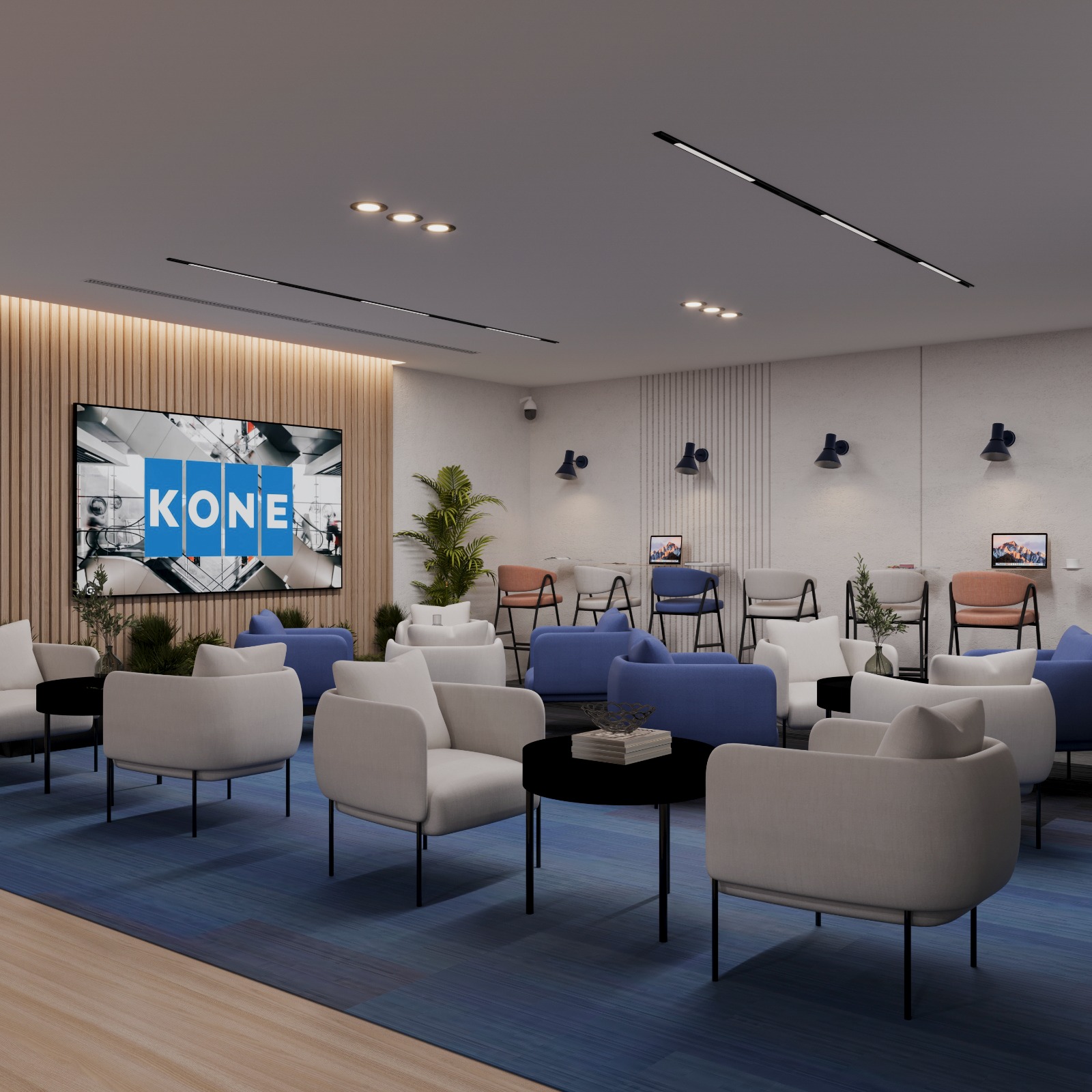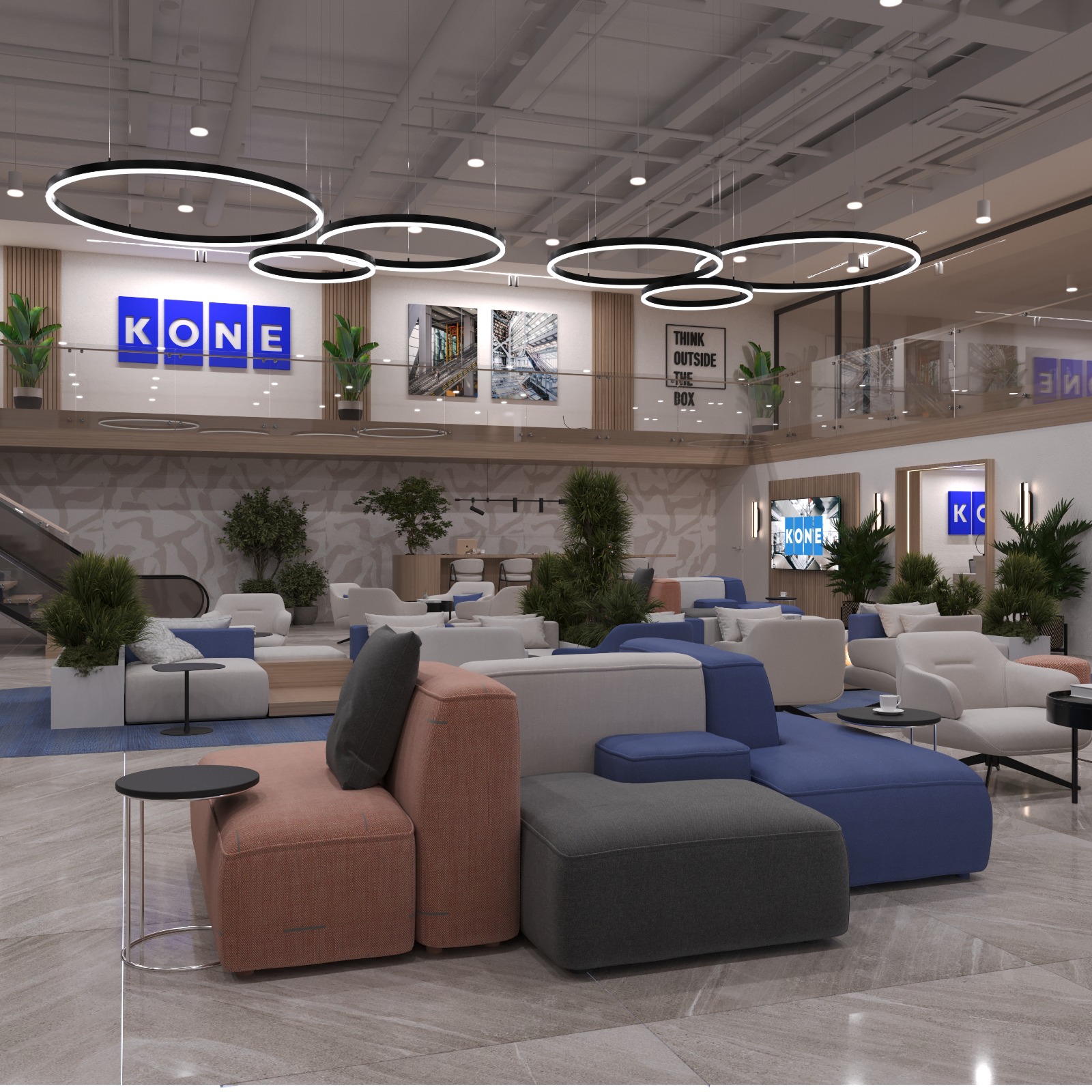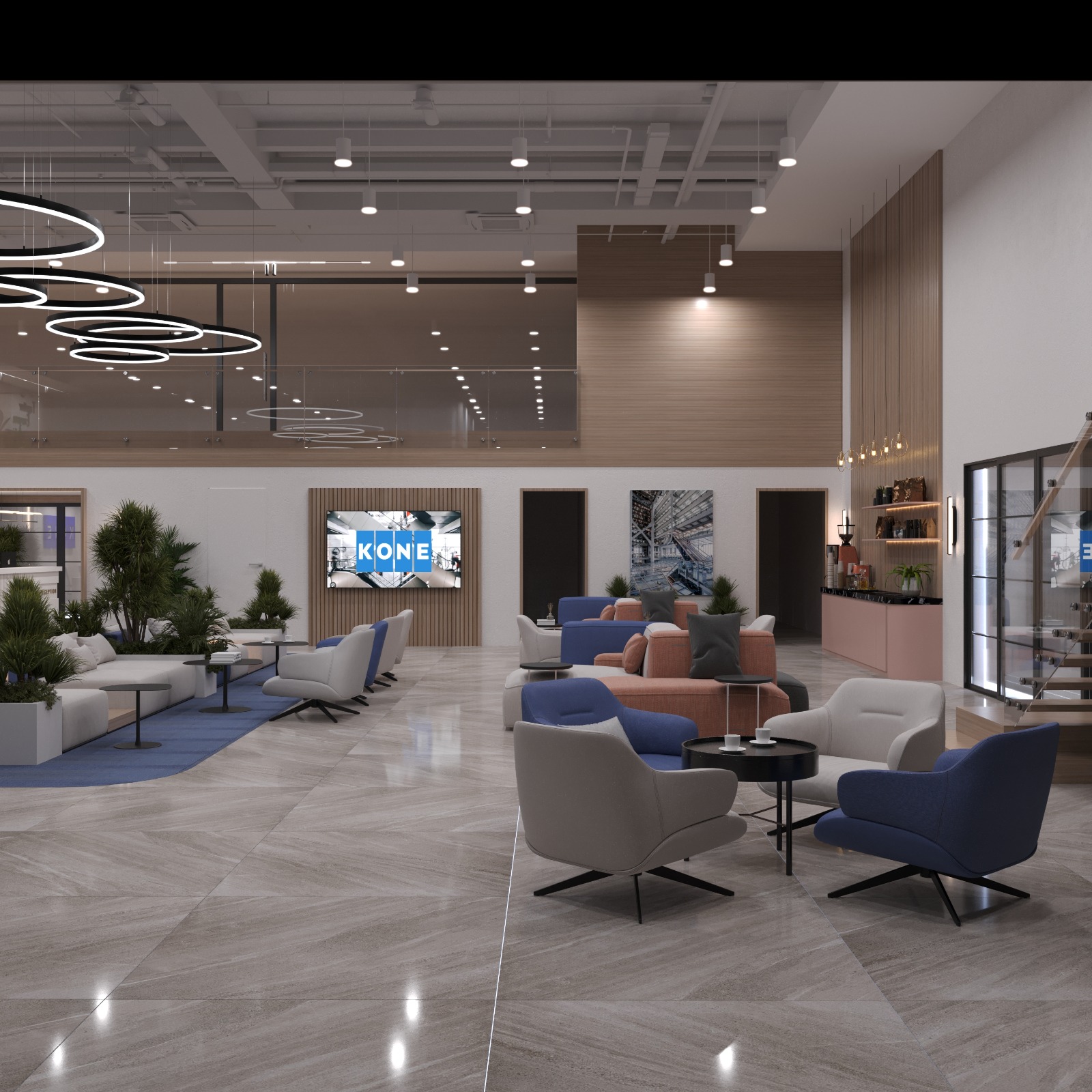 من اعمال انتجرا للتصميم الداخلي و الخارجي لتطوير مصنع كوني للمصاعد والسلالم الكهربائية بالرياض